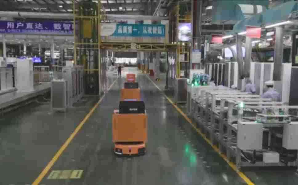 为车载冰箱物流配送打造的智能解决方案,,,,包含产中物流通过潜伏举升AMR搬运至线边,,,产后成品物流智能仓储,,流程包含产中物流智能齐套入库,,,线边安灯叫料AMR智能配送至线边,,,成品入库、、、出库,,,,通过无人堆高车机器人,,智能仓储管理替代人工作业管理,,,实现更高存储、、更高效率、、、更具柔性化的解决方案。。。